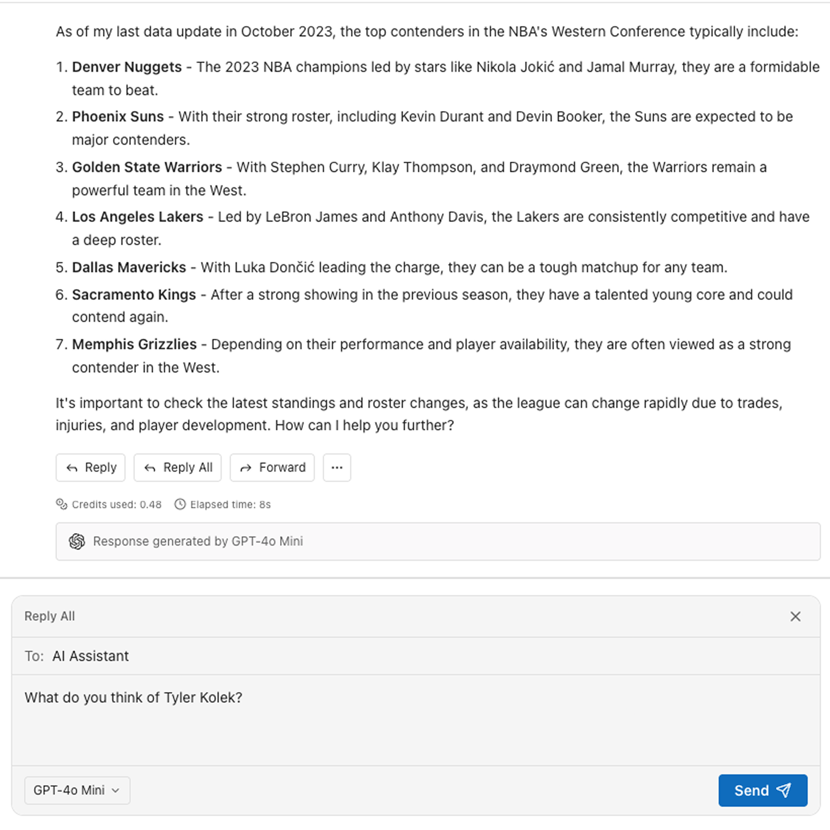 Never lose your chat history. All conversations are saved and organized like email threads. Search through past AI conversations, reference previous answers, and build on your knowledge base.